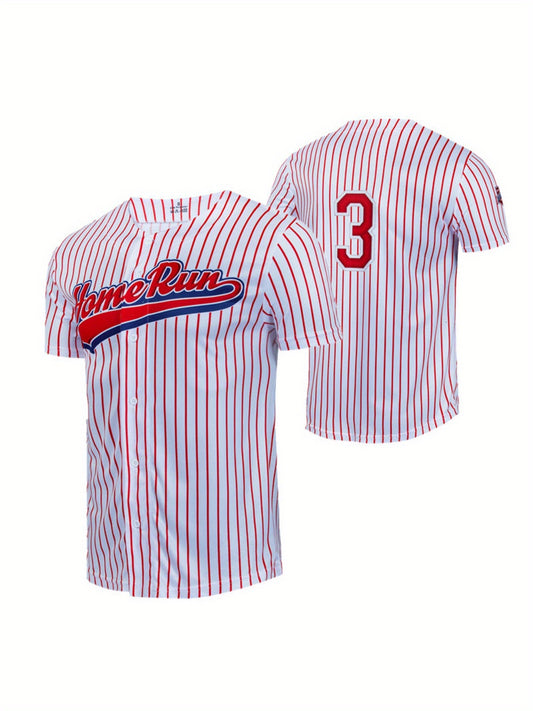 Men's Striped Baseball Jersey, Hip Hop Classic Design Baseball Shirt, Breathable Button Up Sports Uniform For Training Competition