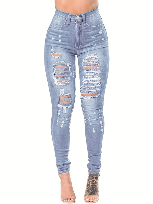 Women's Slim Fit Slash Pockets Distressed High-Stretch Denim Pants,