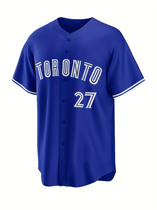 Men's TORONTO # 27 Classic Design Baseball Jersey, Retro Baseball Shirt, Slightly Stretch Breathable Embroidery Button Sports Uniform For Training Competition Party