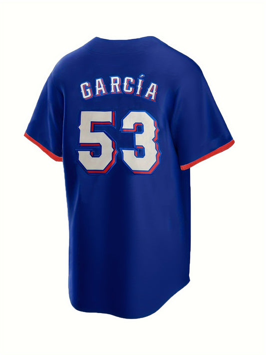 Men's TEXAS #53 Baseball Jersey, Blue Classic Embroidery Retro Design Button Up Short Sleeve Breathable Shirt For Training Competition