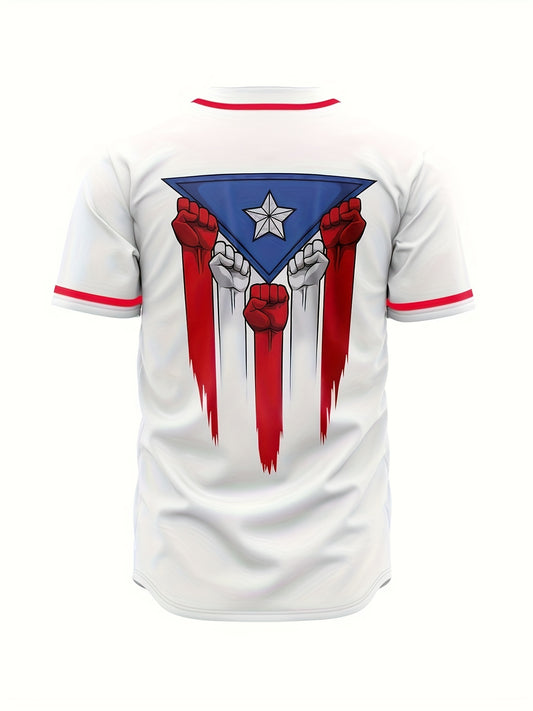 Men's Stylish Fist Pattern Baseball Jersey, Casual Breathable Baseball Collar Button Up Short Sleeve Tee Top For Playing Baseball