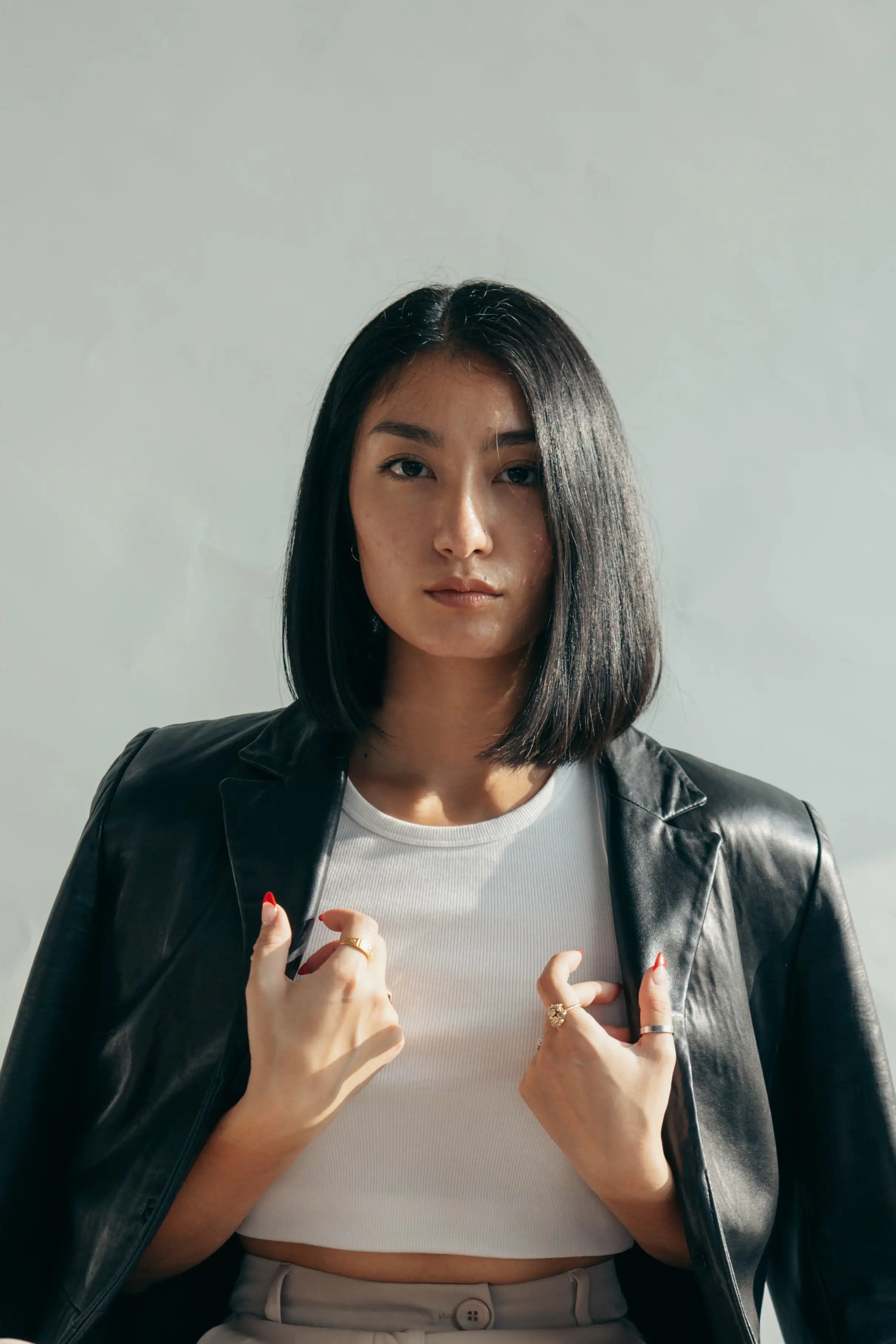 Mens Slim Fit PU Leather Jacket with Stand Collar