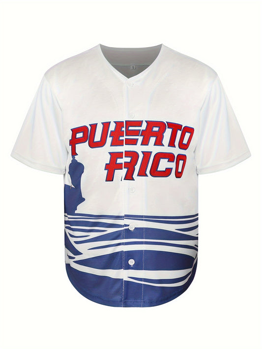 Team PUERTO RICO White Red And Blue Short Sleeve Button Up V-neck Baseball Jersey | Classic shirt