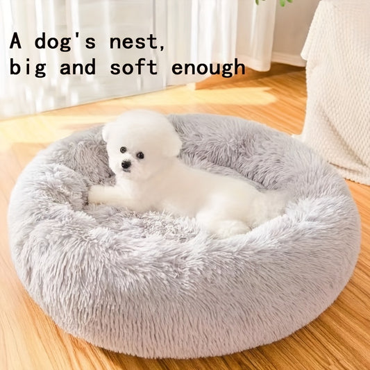 1pc Long Plush Warm Round Pet Nest Pad, Deep Sleep Cat Nest Dog Nest, Small And Medium-sized Pet Nest, Comfortable Soft Thickened Round Sofa, Increased Non-slip Comfortable Warm Nest