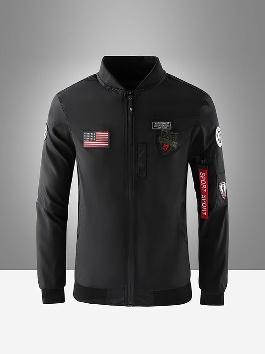 Men's Long Sleeve Zip Up Baseball Collar Jacket With Sleeve Zipper Pocket