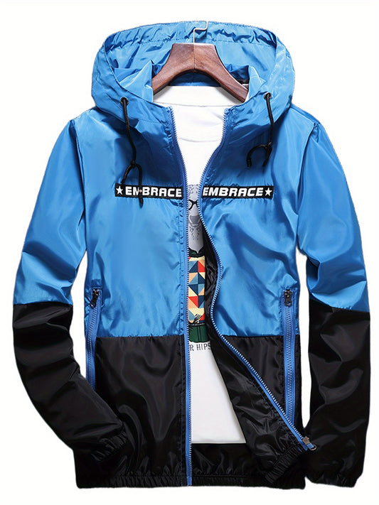 Men's Light Grey Water-resistant Hooded Windbreaker Coat