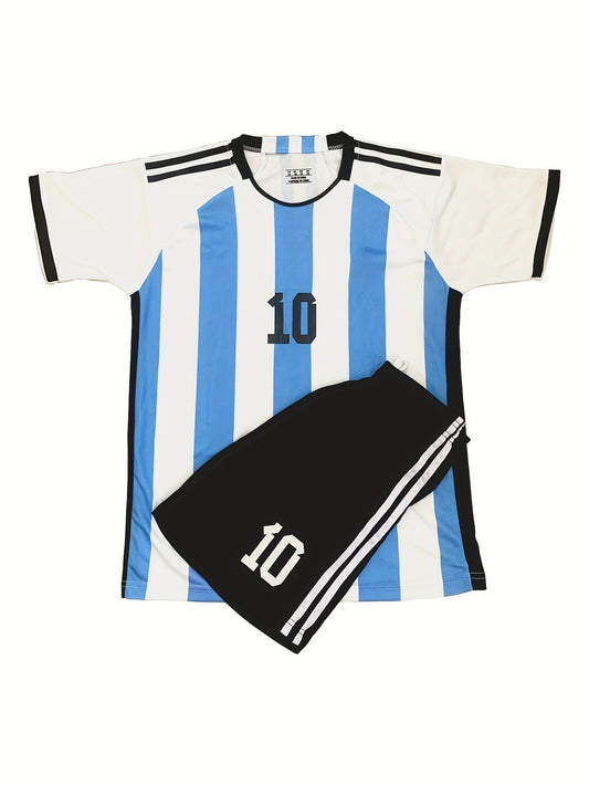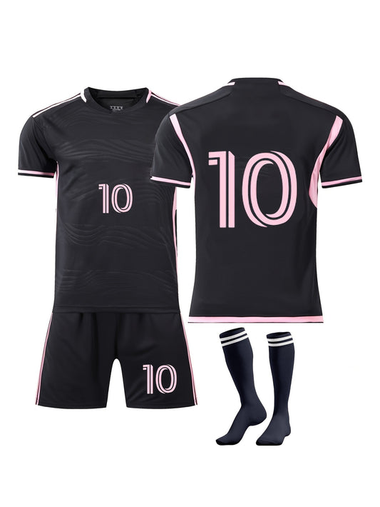 3pcs Girls/boys No.10 Print Football Jersey, Breathable T-shirt & Shorts & Socks For Soccer Training And Competition