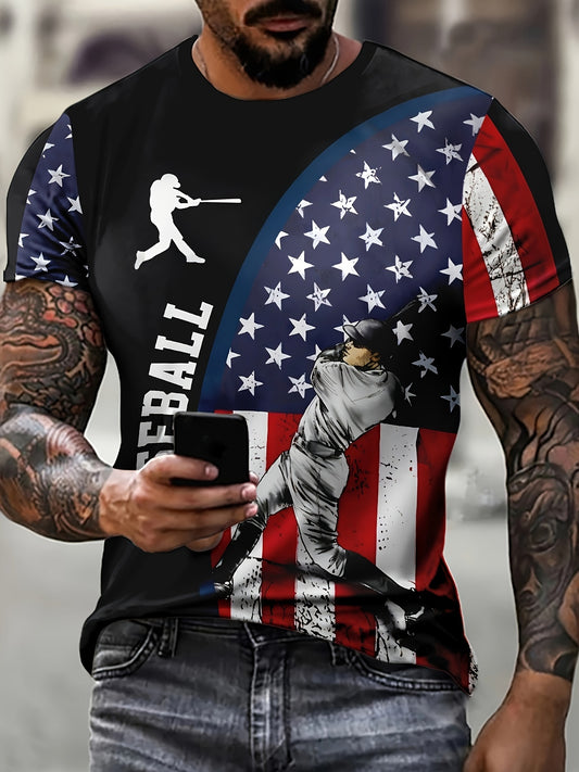 American Flag Mens Crew Neck Sports Tshirt Summer Style