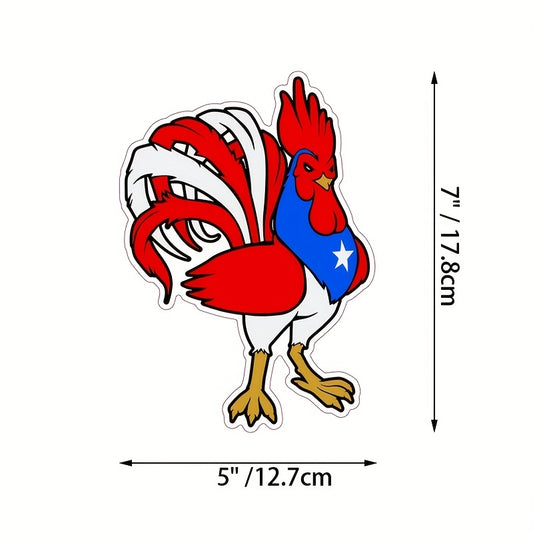 7*5in Puerto Rican Flag Rooster Vinyl Decal - Puerto Rico Bumper Sticker - Proudly Puerto Rican Decal For Cars, Trucks, Vans, Laptops, Water Bottles