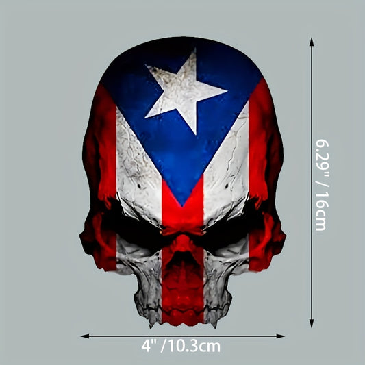 6-inch Puerto Rican Flag Skull Vinyl Sticker For Bumper, Suitable For Cars, Trucks, Trucks, Laptops