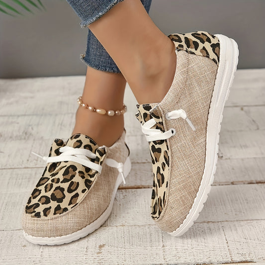 Women's Leopard Print Flat Lace-up Sports Casual Sneakers Shoes