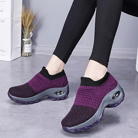 Women's Purple Low Top Sock Sneakers Shoes For Walking