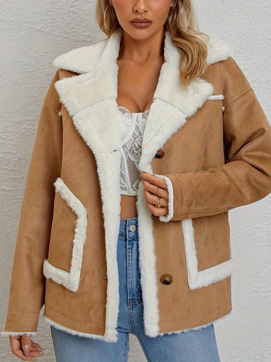 Womens Double Breasted Long Sleeve Overcoat Perfect for FallWinter