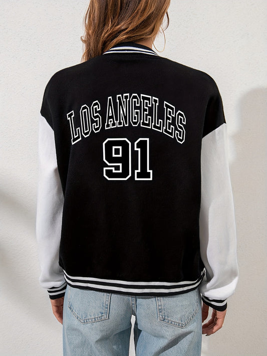 Womens Casual Letter Print Bomber Jacket SpringFall
