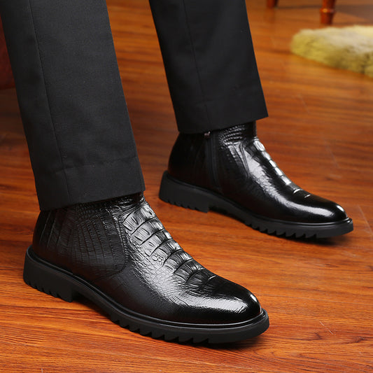 Luxury Mens Crocodile Leather Chelsea Boots FleeceLined