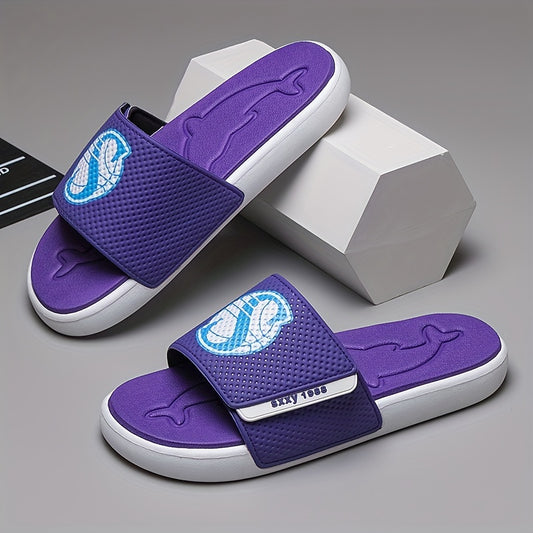 PLUS SIZE Men's Alphabet Print Summer Slides, Non Slip Quick-drying Open Toe Slippers For Indoor Outdoor Walking And Bathroom Shower, Men's Trendy Beach Slides