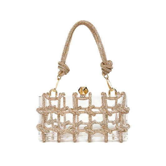 French Sweet Shiny Rhinestone Banquet Small Square Bag