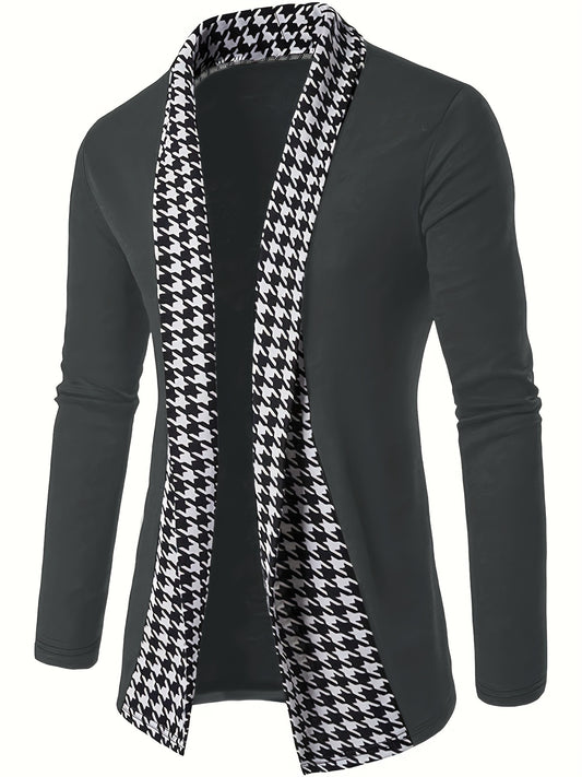 Plus Size Men's Herringbone Cardigan Contrast Color Tops Spring Fall, Men's Clothing