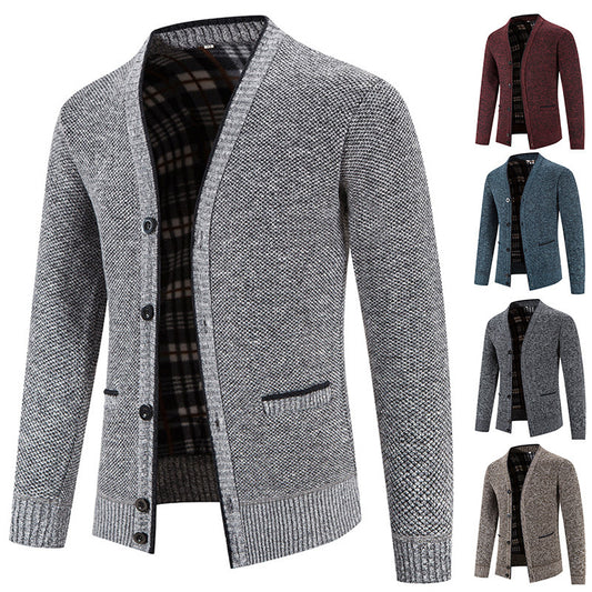 Men's Jacket Knitwear Autumn And Winter Fleece Lined Padded Warm Keeping Cardigan