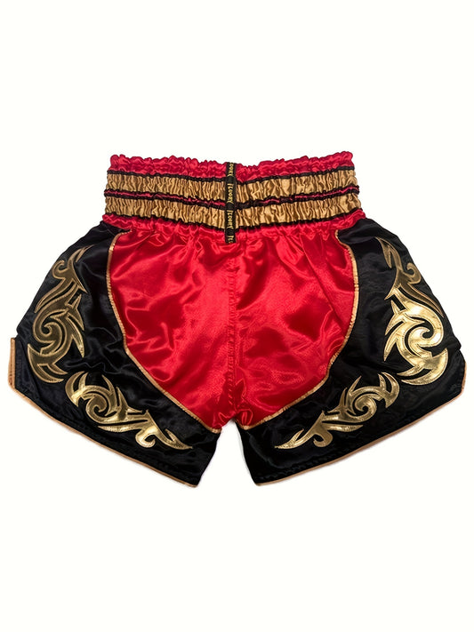 Trendy Color Block Men's Boxing Fighting Kickboxing Shorts With Embroidery Design, Summer Shorts, Gift For Men