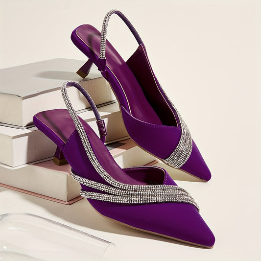 Elegant Rhinestone Slingback Mid Heel Pumps