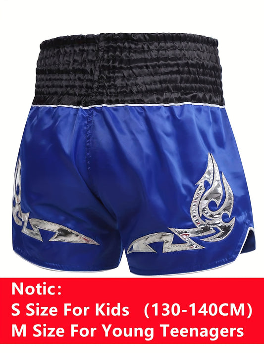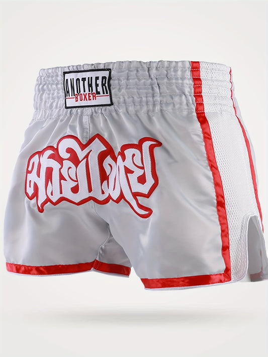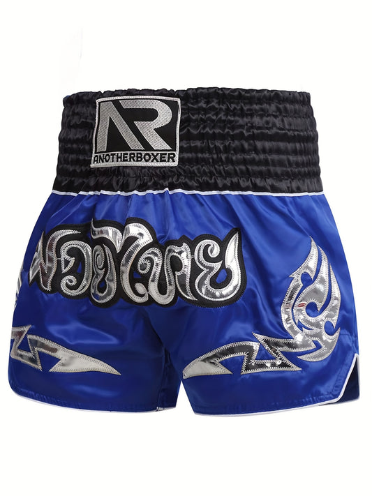 Men's Letters Embroidery Pattern Boxing Shorts, Active Elastic Waist Sports Trunks For Boxing Workout Fighting Training
