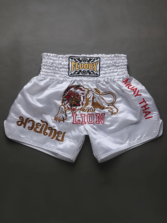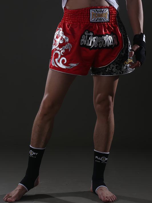 FLUORY Men's Embroidery Design Fashion Muay Thai Shorts, Boxing Sports Loose Shorts For Summer Workout