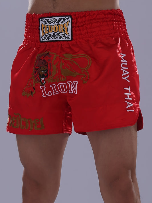 Men's "Lion" Embroidered Muay Thai An Boxing Red Shorts