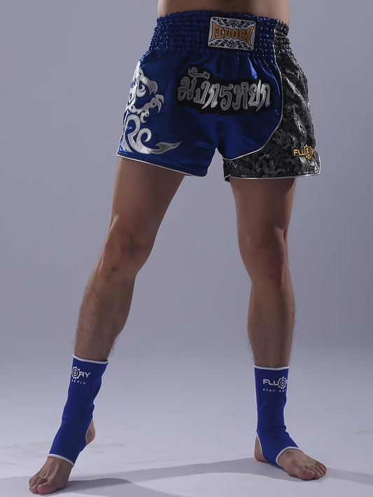 FLUORY Muay Thai Shorts, Embroidered Sports Trunks For Boxing Workout Fighting Training