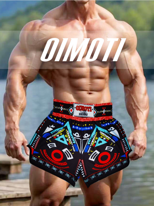 Black ''OIMOTI'' Pattern Men's Boxing Shorts