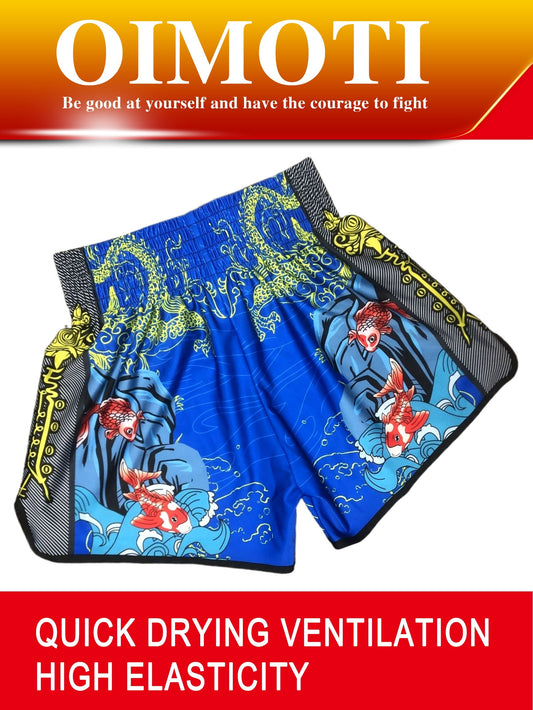 Men's Muay Thai Fight Shorts Boxing Kickboxing Shorts With Chinese Style Fish Embroidery Design