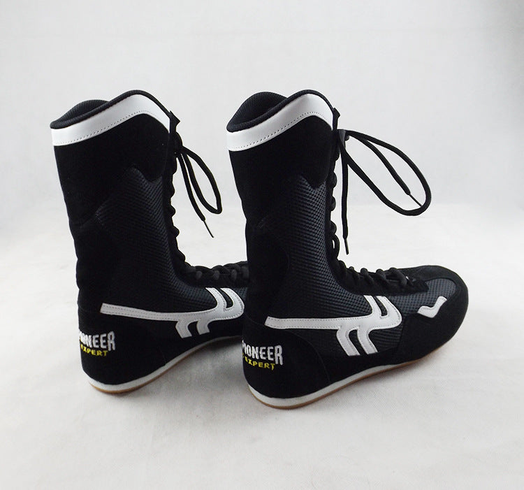 Men's Black Professional High Top Lace Up Boxing Shoes
