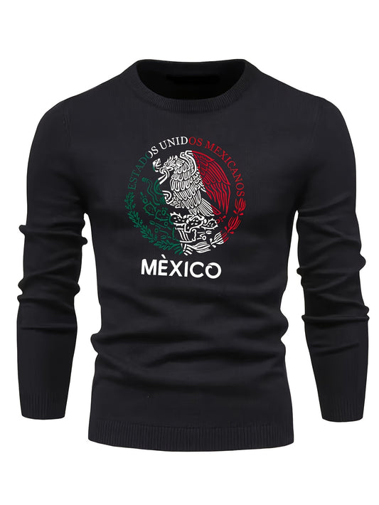 Men's Casual Stretch Long Sleeve Sweater | Mexico Symbol Pattern Pullover