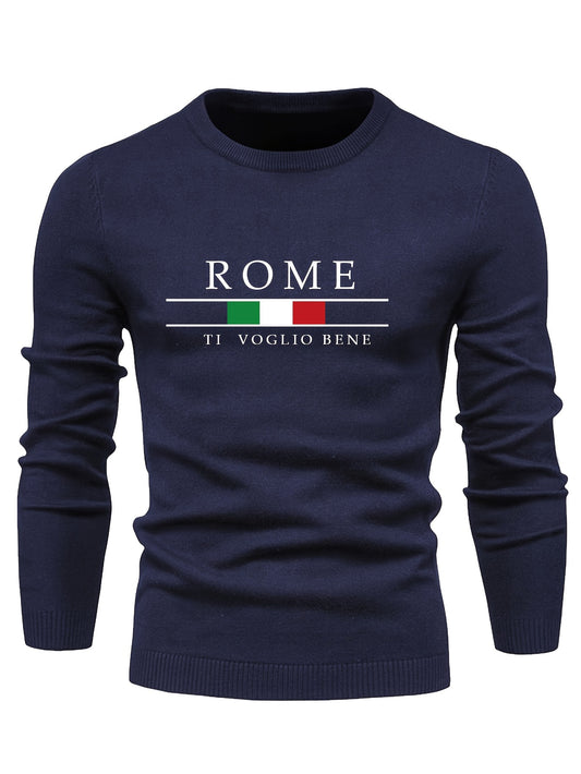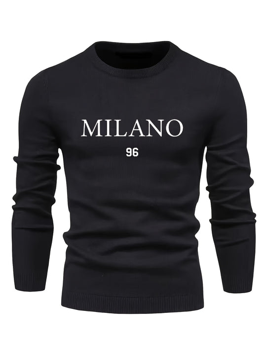 Men's Casual Long Sleeve Sweater | MILANO Print Knitted Crew Neck Pullover