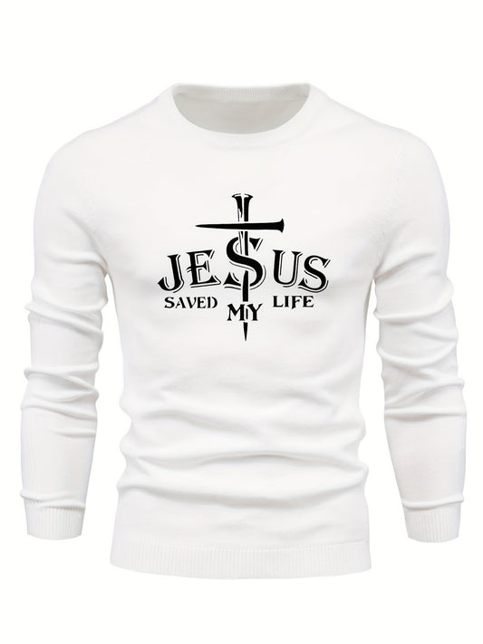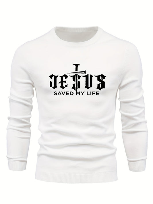 Jesus Saved My Life Print Crew Neck Pullover For Men