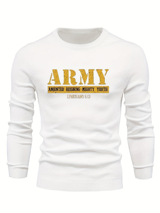 Men's Round Neck ARMY Print Slim Fit Long Sleeve Sweater Pullover