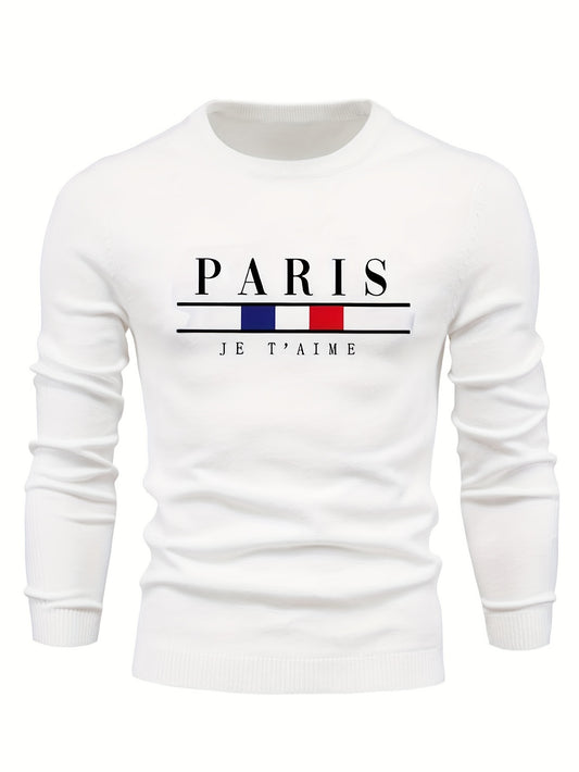 Men's Skinny Sweater with Paris Printed Design | Casual Pullover