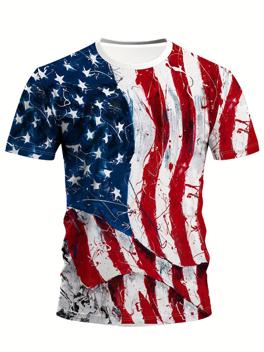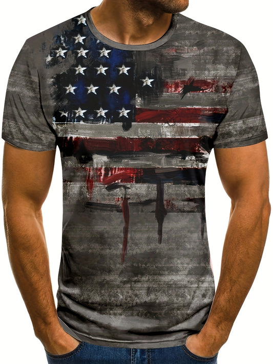 Mens Patriotic USA Flag Print Tee for Summer Outings