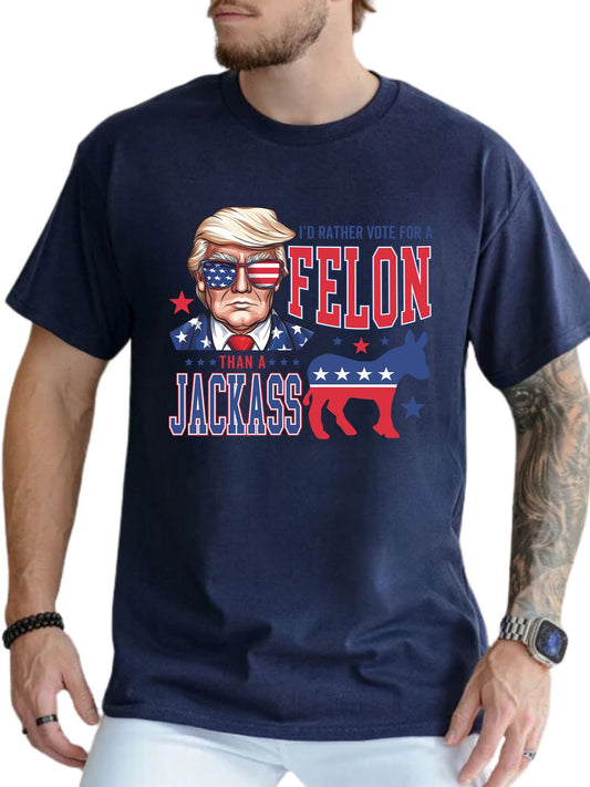 Men's Funny Trump I'd Rather Vote For A Felon Cotton Crew Neck Shirt