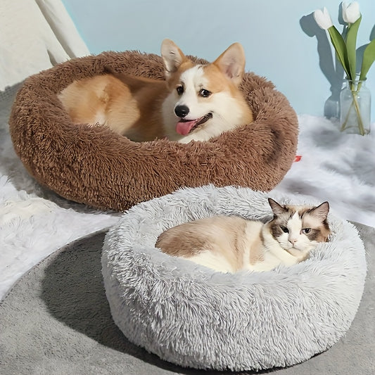1pc Long Plush Warm Round Pet Nest Pad, Deep Sleep Cat Nest Dog Nest, Small And Medium-sized Pet Nest, Comfortable Soft Thickened Round Sofa, Increased Non-slip Comfortable Warm Nest