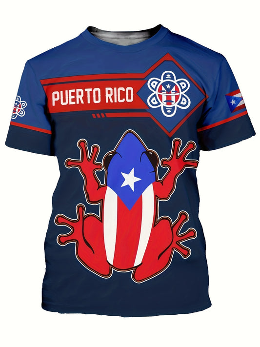 Men's Retro Style Puerto Rico Flag Themed Digital Graphic Print Short Sleeve Crew Neck T-shirt