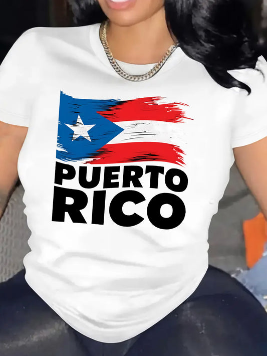 Plus Size Puerto Rico Flag Print Crew Neck Tee
