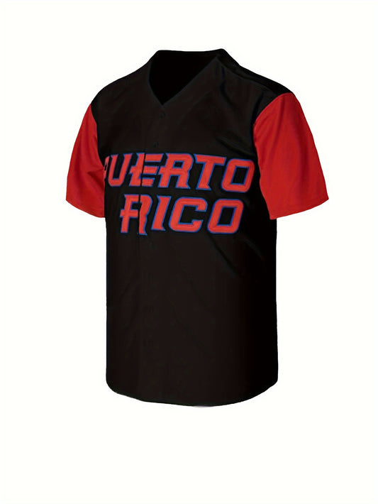 Puerto Rico Embroidered VNeck Mens Baseball Jersey