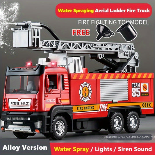Camión De Bomberos De Aleación Con Función De Rociado De Agua Tipo Prensa, Así Como Sonido Realista Y Luces Intermitentes Para Regalo De Navidad Y Acción De Gracias
