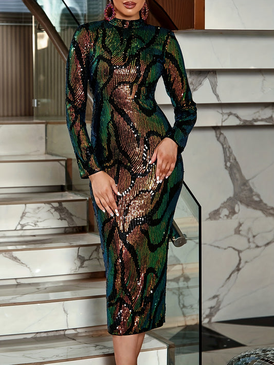 Vintage Sequin Mock Neck Bodycon Dress Perfect for Spring Fall