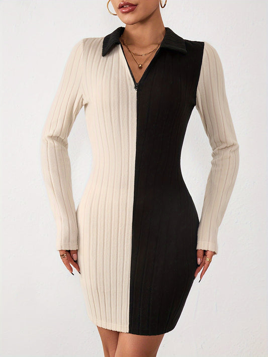 Women's Apricot Chic Color Dress Ribbed Bodycon With Zipper