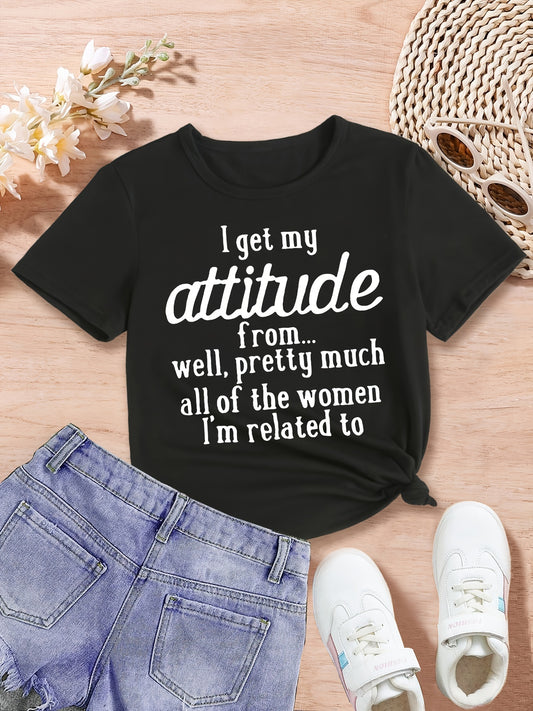 I GET MY ATTITUDE FROM... Print Short Sleeve T-shirt, Versatile Tees Summer Clothes For Girls