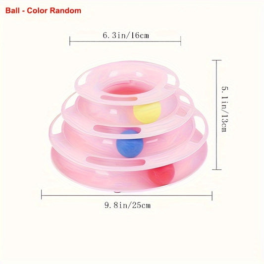 Cat Three Layer Turntable Toy Educational Play Track Tower Cat Teaser Toy Dish For Indoor Cats - Interactive Cat Ball Toy For Indoor Cats With Three Colorful Balls Exerciser Game & Funny Puzzle Kitty Toys