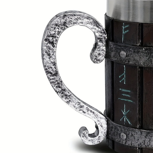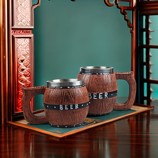 1pc Viking Beer Mug, Double Wall Insulated Whiskey Barrel Cup, Viking Wood Style Beer Mug, Wooden Gift Antique Arrel Capacity