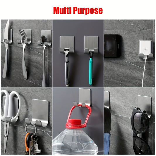 5pcs Heavy-Duty Adhesive Hooks, No Drilling Needed, Ideal For Bathroom And Toilet, Effortlessly Hang Towels On Walls Or Doors, Leaves No Traces Behind